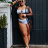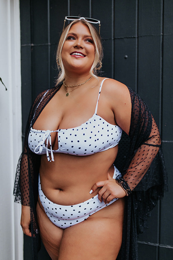 Plus Size - The white 'Palisades Bikini Top' features a bandeau silhouette patterned with black polka dots, a flirty center cutout with an adjustable drawstring neckline, spaghetti straps, and front ruching detail! The definition of crush-worthy! This bikini top comes with removable padding.