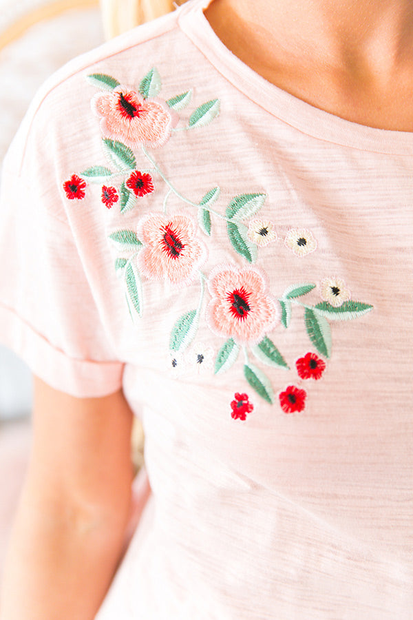Create a crush-worthy look in minutes with this effortlessly easy essential! This burn-out tee has short cuffed sleeves, a relaxed shift silhouette & a floral embroidered bust that adds the perfect boho touch. Style this comfy cutie with your favorite denim for a "casual cute" look that's perfect for all of your afternoon adventures!