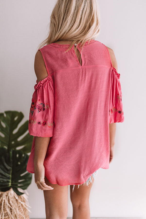 Paradise is calling -- all you need is a plane ticket... and this cold-shoulder cutie! This pink shift top has blousy cold-shoulder sleeves, keyhole accented upper back with button closure, and a relaxed floral embroidered bodice that you're sure to adore! Throw on a colorful statement earring and your favorite denim for a chic look that is sure to be the life of every party!