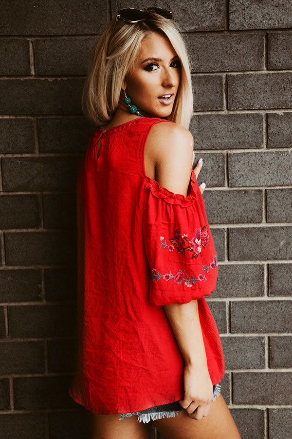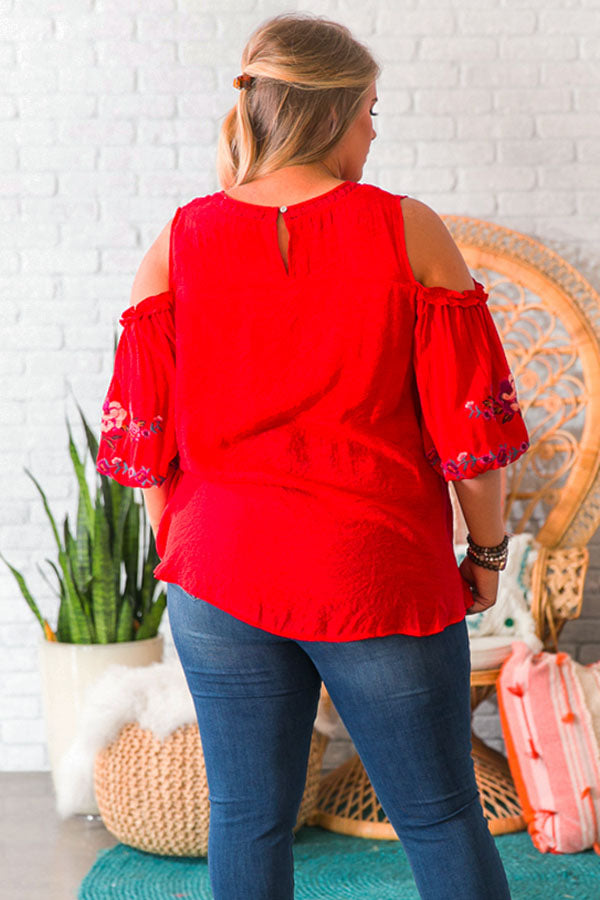 Paradise is calling -- all you need is a plane ticket... and this cold-shoulder cutie! This red shift top has blousy cold-shoulder sleeves, keyhole accented upper back with button closure, and a relaxed floral embroidered bodice that you're sure to adore! Throw on a colorful statement earring and your favorite denim for a chic look that is sure to be the life of every party!