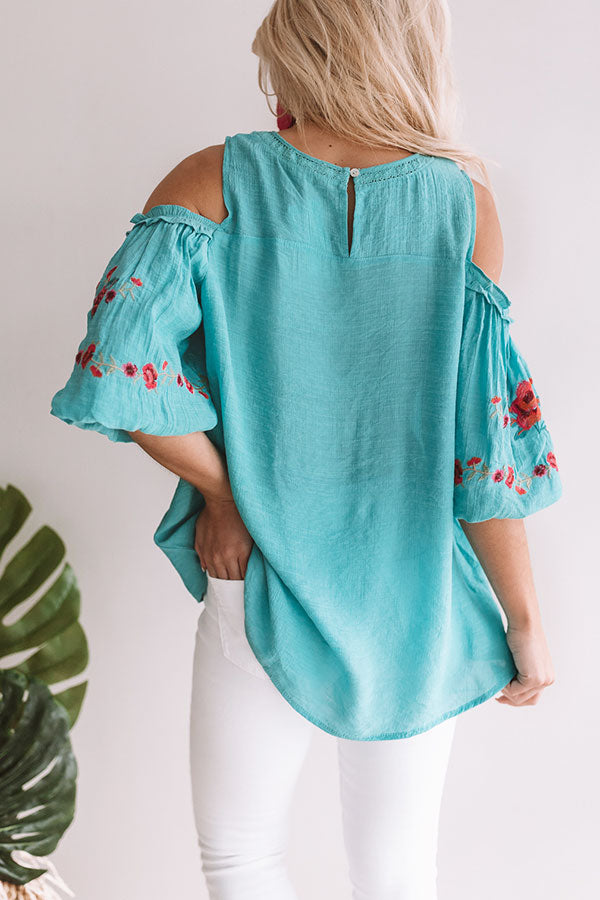 Paradise is Calling Embroidered Shift Top in Turquoise