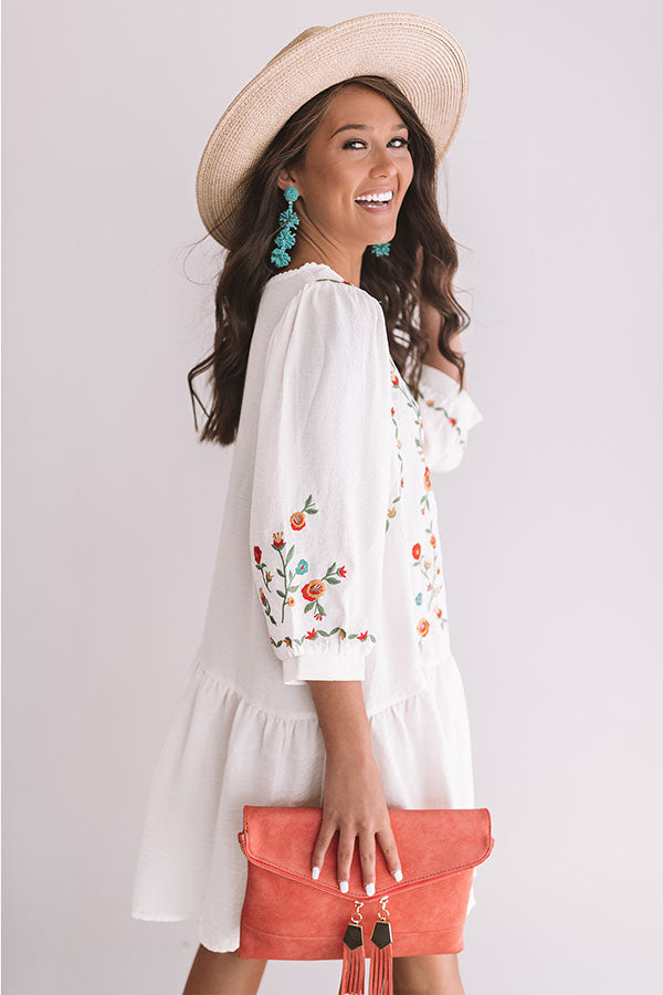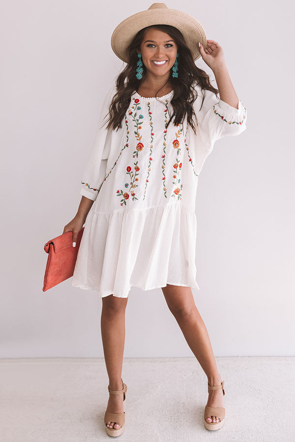 Paradise Island Embroidered Dress in Cream