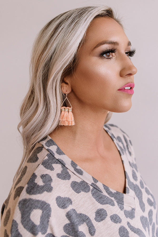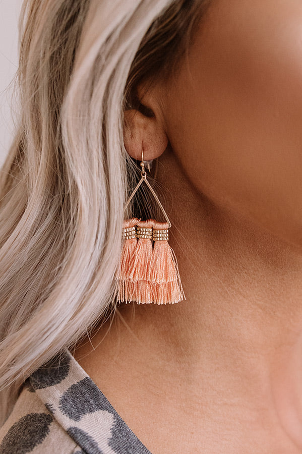 You are sure to look pretty in paradise when you accessorize with these adorable statement earrings featuring dainty dangling gold triangles with peach colored accent tassels!
