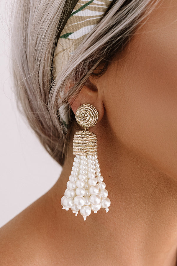 Add a touch of elegance to your OOTD by accessorizing with our stunning "Paris Inspiration" statement earrings featuring gold beaded ball studs and pearl tassels!