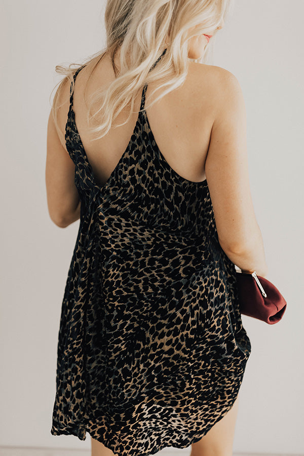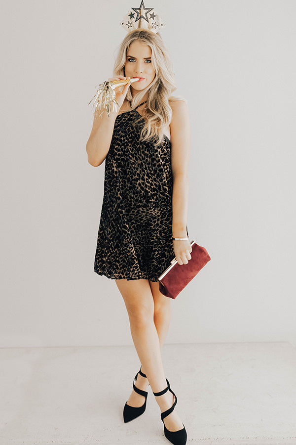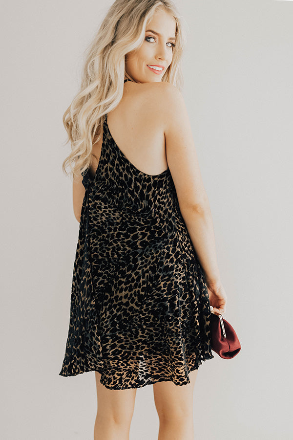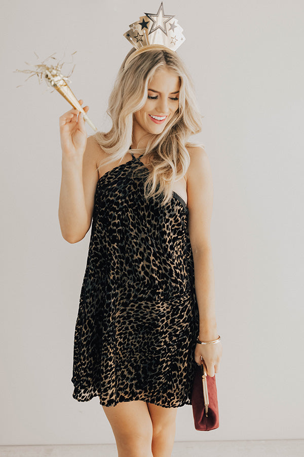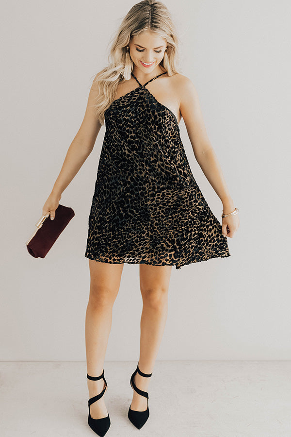 Slip into this velvet to the touch dress and dance the night away in this stunner! This velvet number features a soft to the touch printed leopard fabric and a high-neckline.