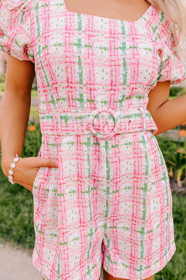 - Stay looking stylish in this sweet romper! - Unlined material with a colorful faux tweed plaid pattern - A square cut neckline - Puff sleeves with elastic cuffs - Back zip closure - A waistline with belt loops and a detachable belt - Pleated accents - Hidden side pockets - A relaxed yet flattering silhouette that ends in straight thigh length hemlines