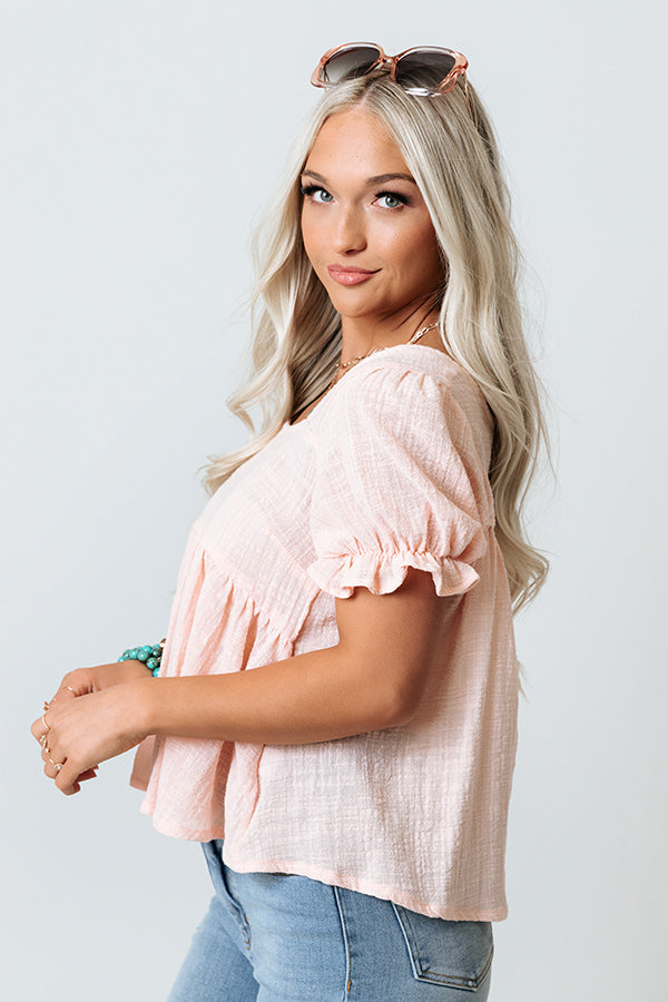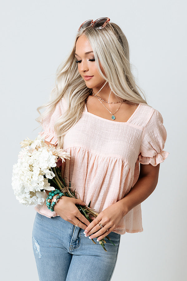 People are guaranteed to admire your unique style when you arrive in our adorable pink 'Parisian Culture Shift Top' featuring lightweight linen-like material, a square neckline and upper back, short puff sleeves with ruffled cuffs, and a flattering figure hugging bodice that falls into a flowy silhouette that ends in an uneven hemline! Measurements