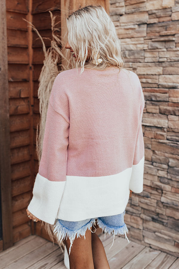 Your style is sure to be envied when you complete your look with our adorable 'Park City Slopes Sweater' featuring soft tight knit material with white and blush hued color block panels, a high rounded neckline, long loose sleeves, and a slouched silhouette that ends in a straight hemline! Measurements