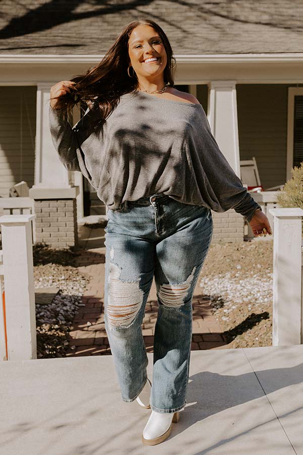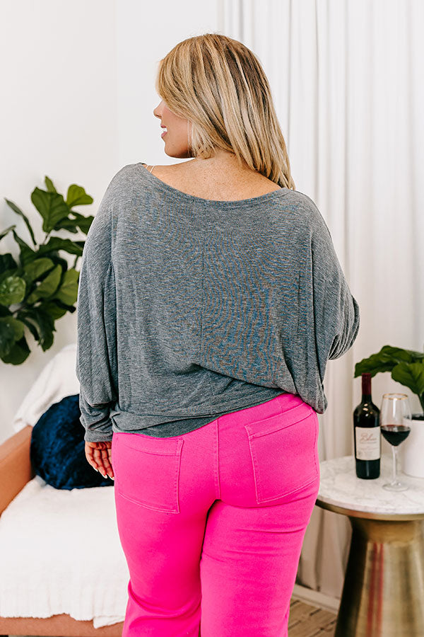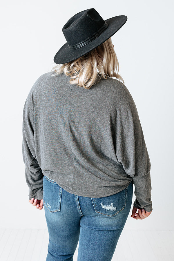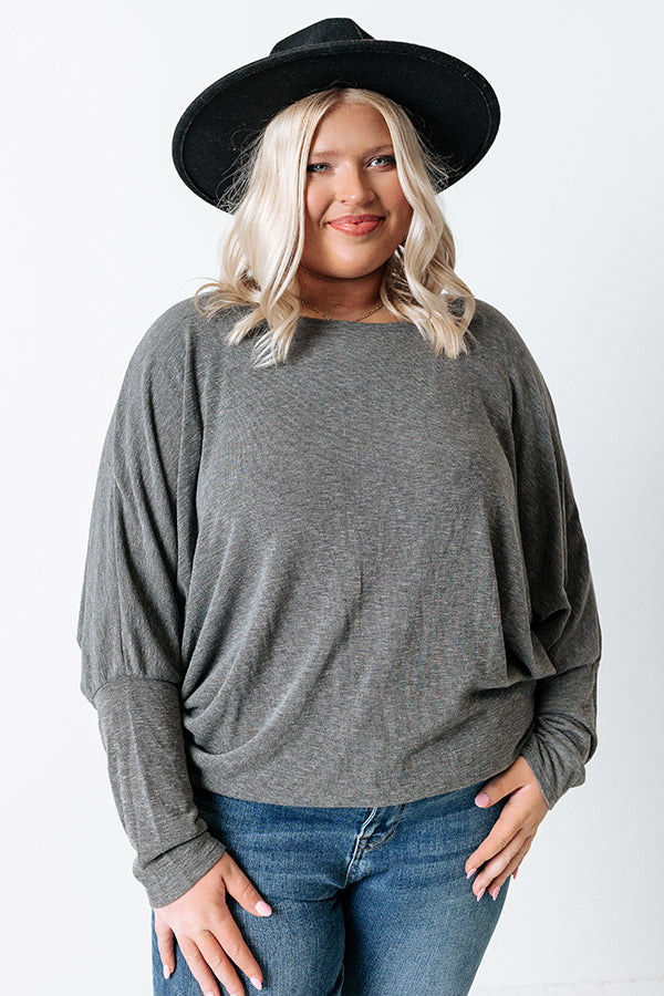 Plus Size - Upgrade your fall basics with our basic grey 'Park Slop Shift Top' featuring soft lightweight material, a rounded neckline, long loose sleeves, and a relaxed silhouette that falls into a straight hemline!