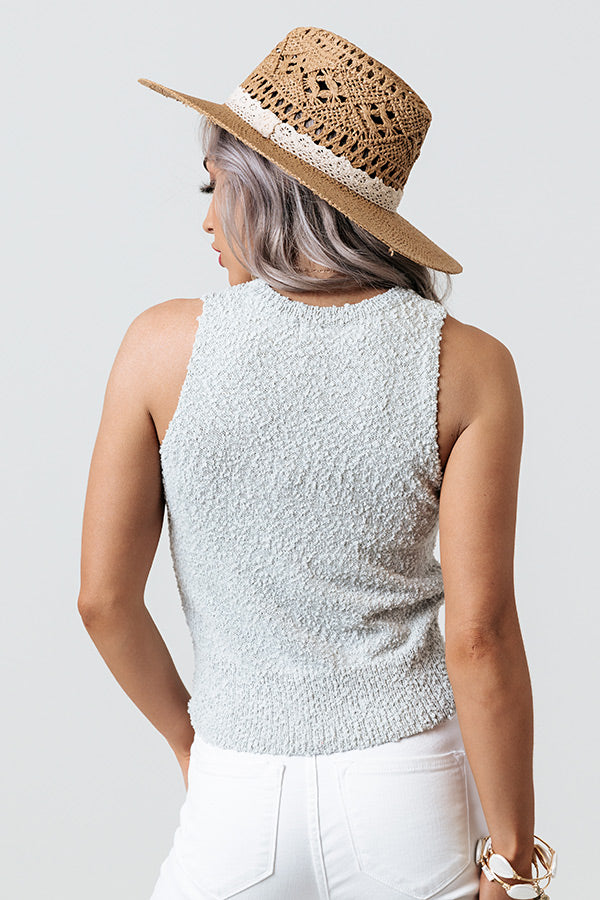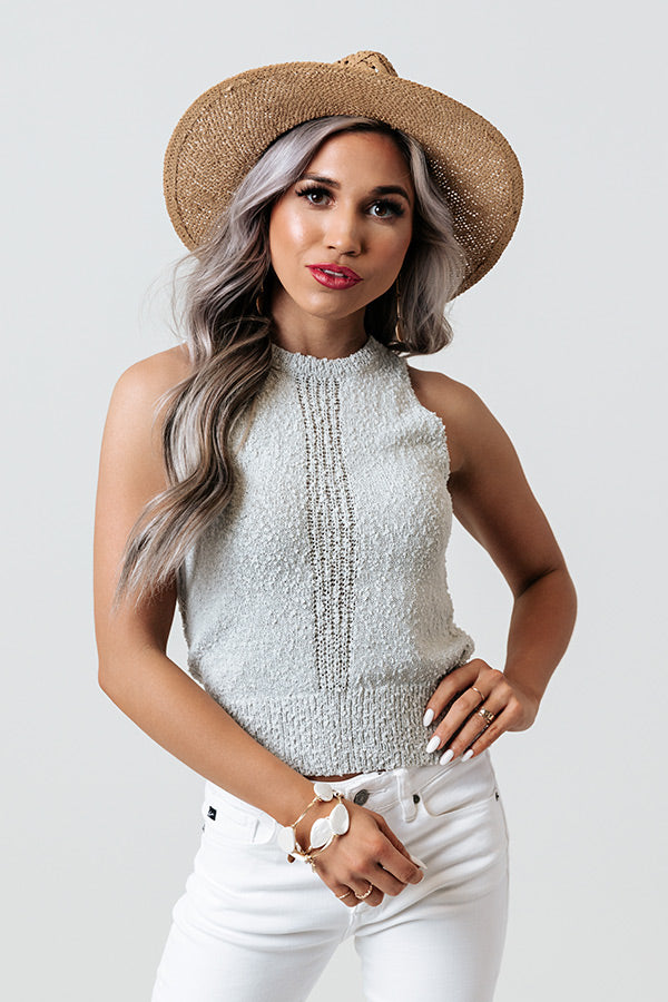 Get ready for park weather in this versatile mint colored tank featuring soft and lightweight tight knit material, a high rounded neckline with a sleeveless fit, and flattering silhouette that ends in a straight hemline!