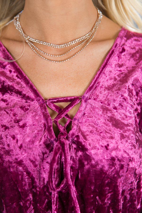 As Shown. This layered choker features an adjustable chain ranging from 13-16 inches.