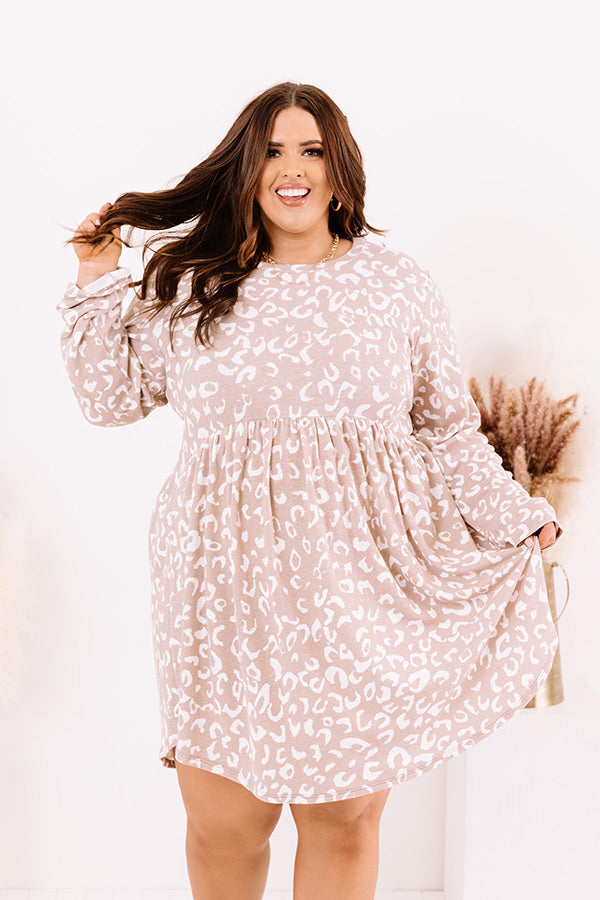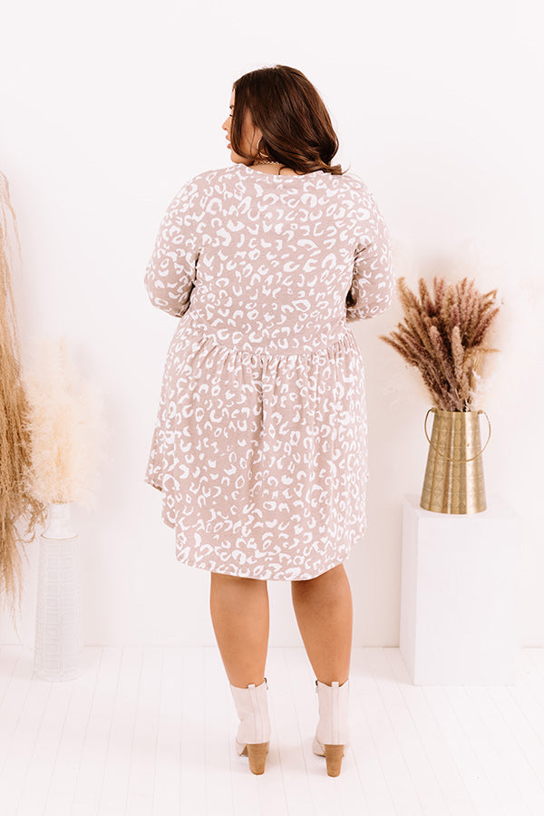 Plus Size - Stay simple but stylish in our adorable neutral hued 'Pass The Cider' shift dress featuring lightweight flowy material patterned with a white leopard print, a high rounded neckline, long sleeves, and a fitted bodice that falls into a relaxed skirt silhouette with an uneven mid-thigh length hemline! Measurements