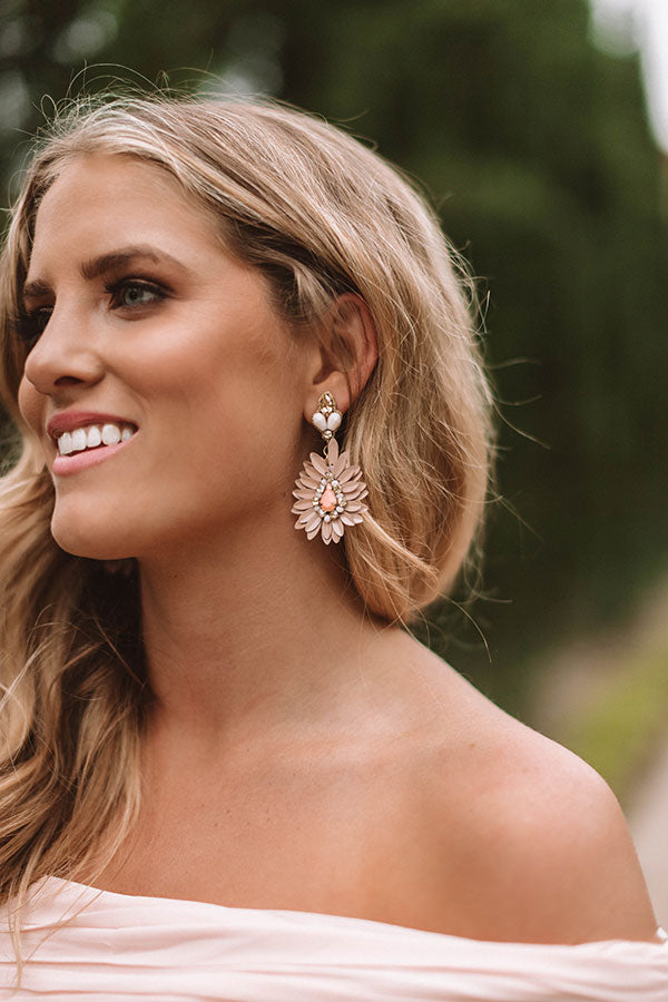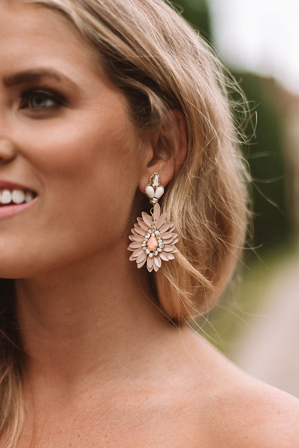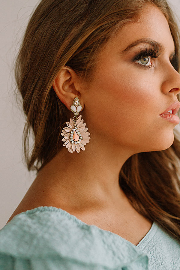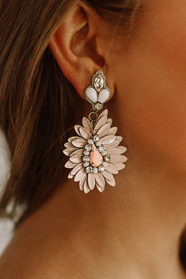 Glitz up your OOTD with our stunning light pink "Pass The Mojitos" statement earrings featuring jeweled studs and rhinestone teardrops with leaf shaped fans!