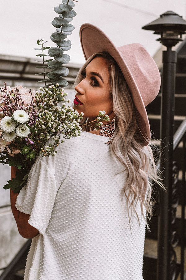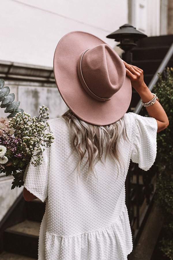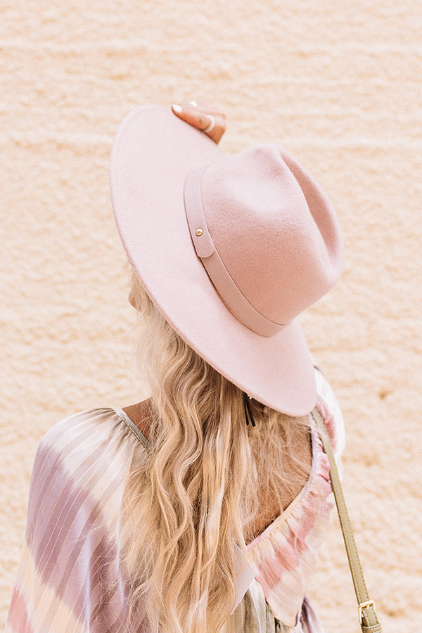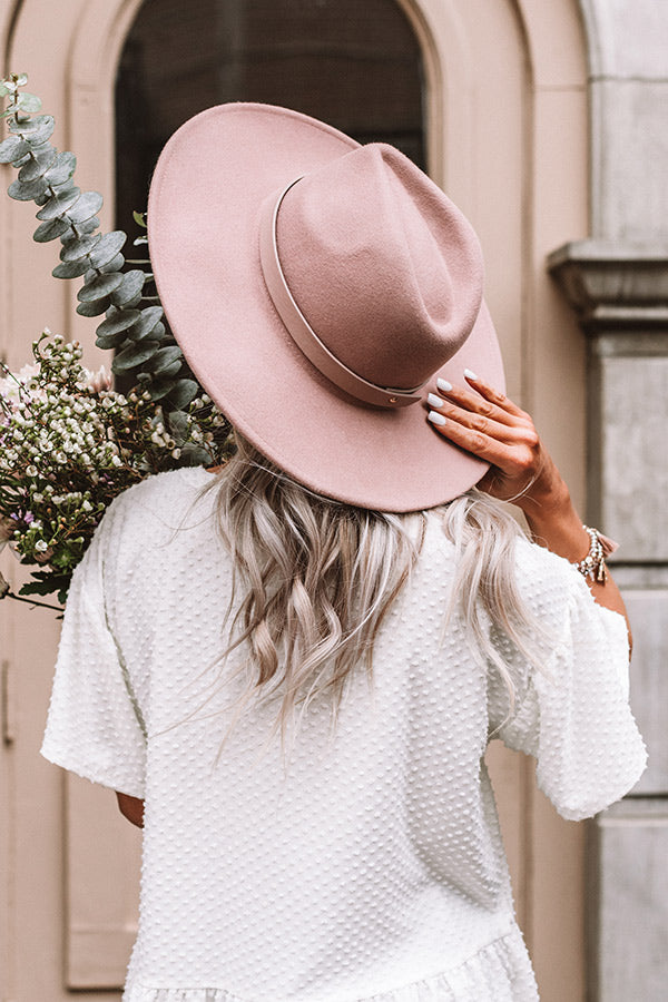 A positive attitude is good for the head, and a fab hat doesn't hurt either! So, top off your look with our blush colored 'Pass The Prosecco' hat featuring soft wool material, a wide stiff brim, and an accent band!