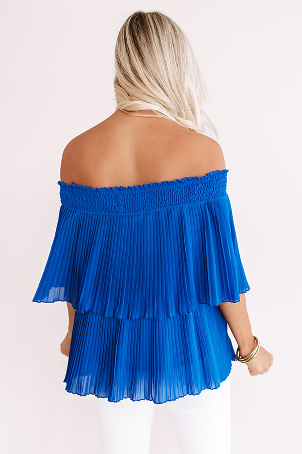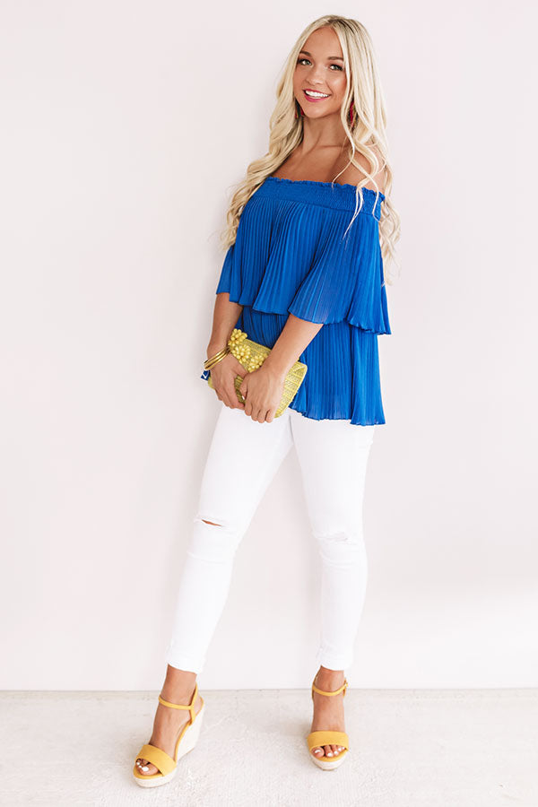 Pass The Sangria Pleated Top In Royal Blue