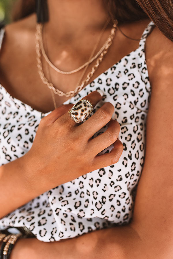 Add a luxurious touch to your OOTD by accessorizing with our stunning "Passage To Paradise Ring" featuring a rounded ivory colored polka dot detailed stone surrounded by rhinestones and set on an adjustable textured gold ring!
