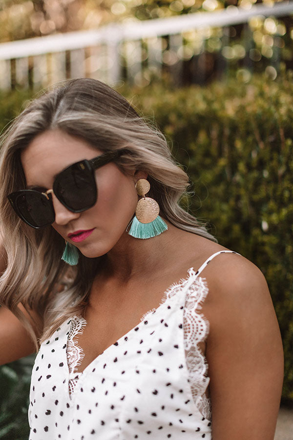 These gold, textured circles are guaranteed to make people look twice and as if the metallic circles weren't enough, there is also blue ocean wave fringe!