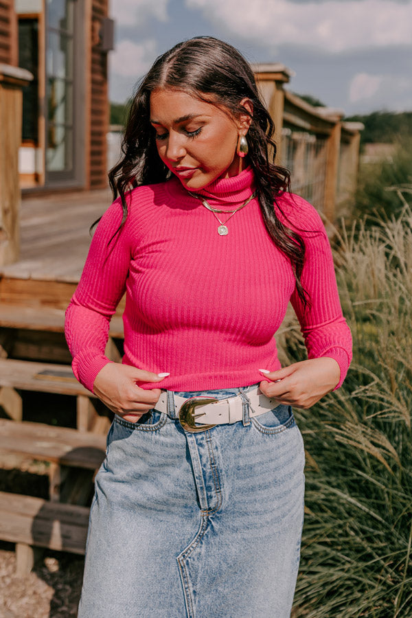 - This turtleneck's cozy-chic style has us falling head over heels! - Unlined knit material with a ribbed texture - A rolled turtleneck - Long fitted sleeves - A figure hugging silhouette that ends in a straight hemline