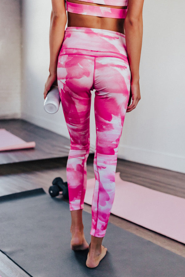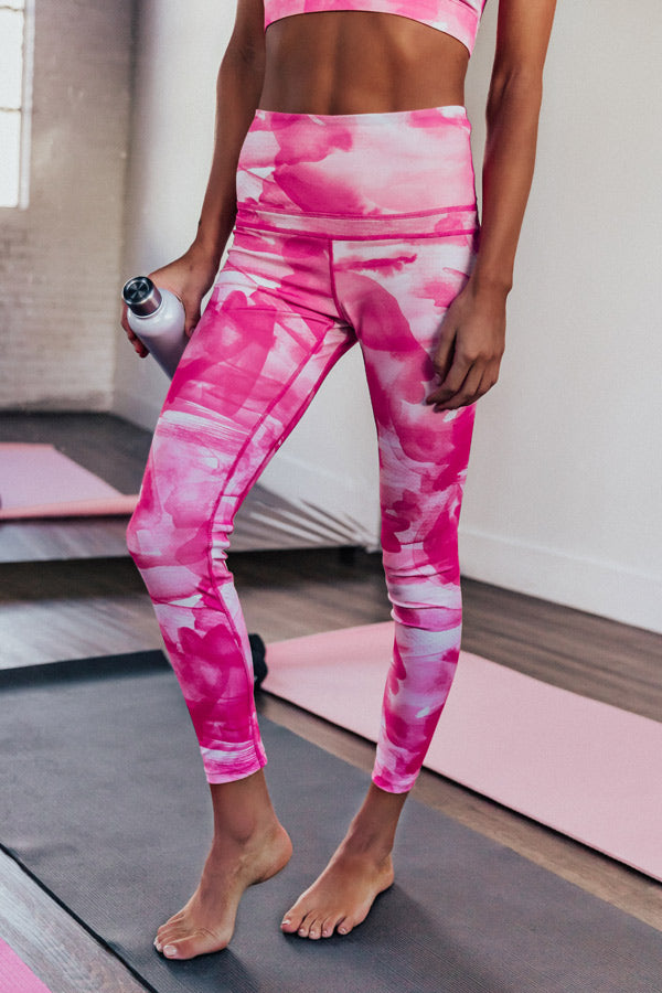 If you have a "passion for fitness," then these active leggings are perfect for you with their sleek stretchy material, figure hugging silhouette, a wide and high elastic waistband for tummy control, a pink and white marbled pattern, and a sleek pant silhouette that falls into straight ankle length hems! This adorable athleisure piece styles perfectly with our "Passion For Fitness Mesh Cut Out Sports Bra in Pink" and trendy sneakers for the ultimate workout set! Measurements