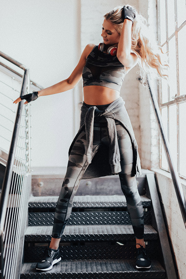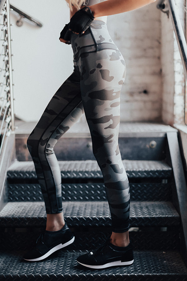 Passion For Fitness High Waist Camo Active Legging In Charcoal