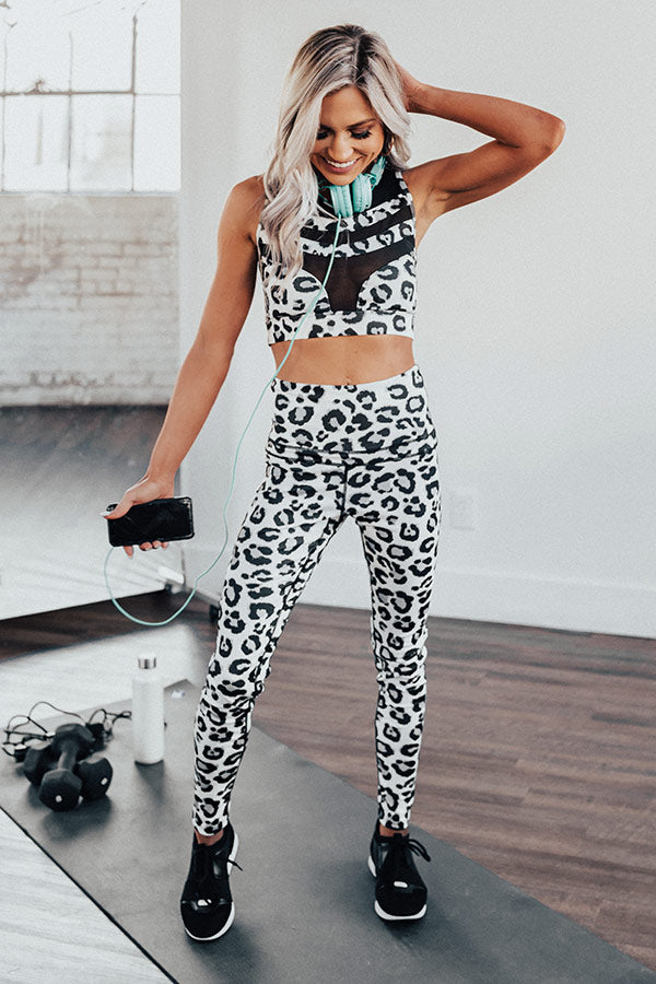 If you have a "passion for fitness," then these active leggings are perfect for you with their sleek stretchy material, figure hugging silhouette, a wide and high elastic waistband for tummy control, a black and white leopard print pattern, and a sleek pant silhouette that falls into straight ankle length hems! This adorable athleisure piece styles perfectly with our "Passion For Fitness Leopard Print Mesh Sports Bra in White" and trendy sneakers for the ultimate workout set! Measurements