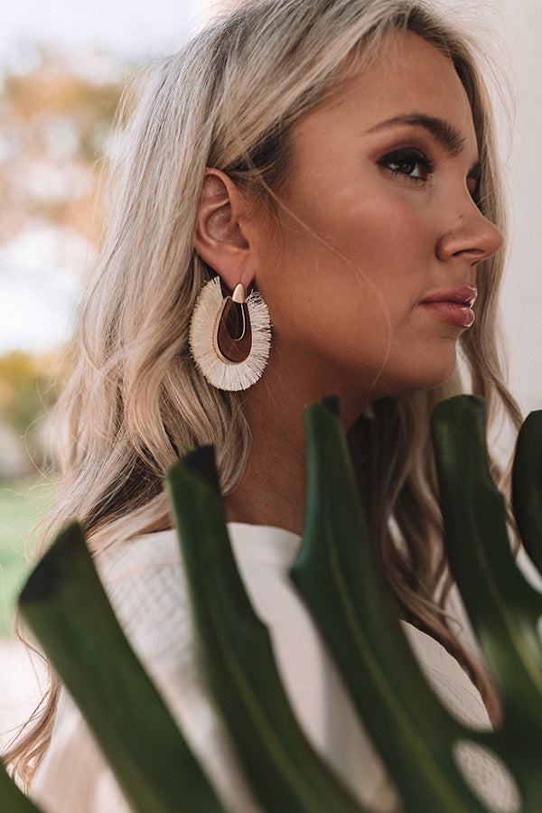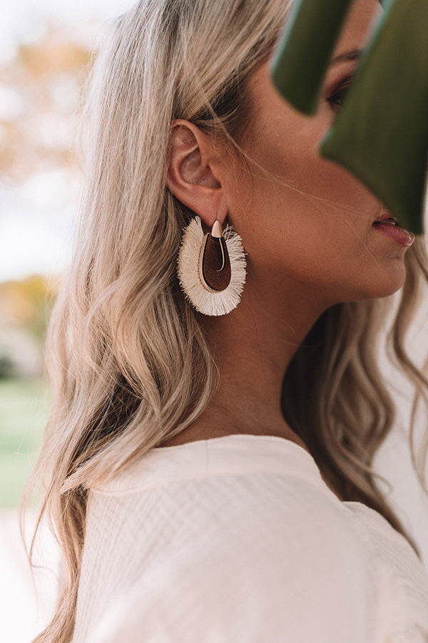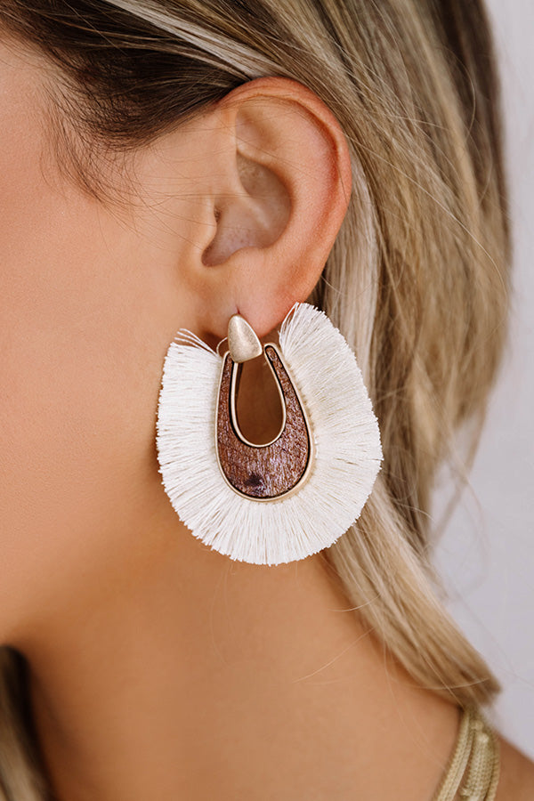 It's the most wonderful time of the year to buy yourself some stunning jewelry like our 'Passport Please' statement earrings featuring gold accents with ivory colored fringe!