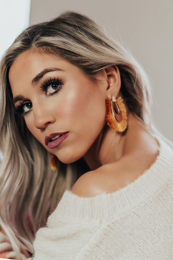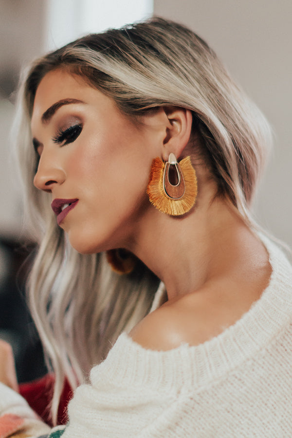 It's the most wonderful time of the year to buy yourself some stunning jewelry like our "Passport Please" statement earrings featuring gold accents with mustard colored fringe!