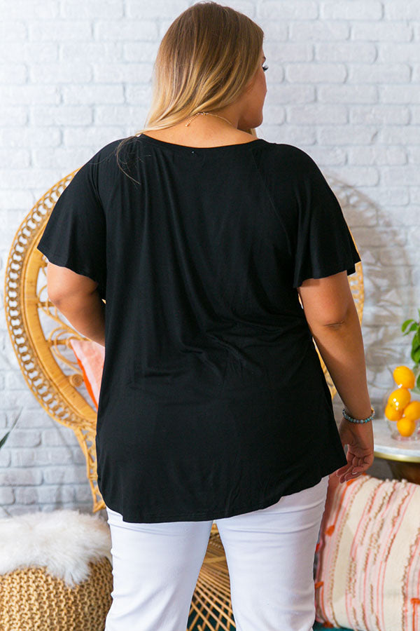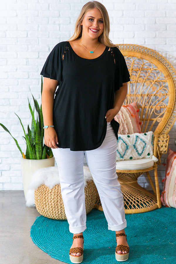 Enjoy a glass of pinot on the patio in this cute & casual tee! The "Patio Nights Shift Tee" has a round neckline, short sleeves with a lattice cut-out design along the inner shoulder of the top & a relaxed jersey rayon bodice. Style with your favorite denim & a colorful statement accessory for an effortlessly stylish look that you will wear time & time again!