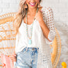 Be in KNIT to win it in this breezy boho babe! This crochet knit overlay has quarter-length sleeves, an open front bodice with tie closure & a scalloped bottom hem. Style with a cami & cut-off shorts for the perfect look for your next outdoor concert or afternoon shopping adventure!