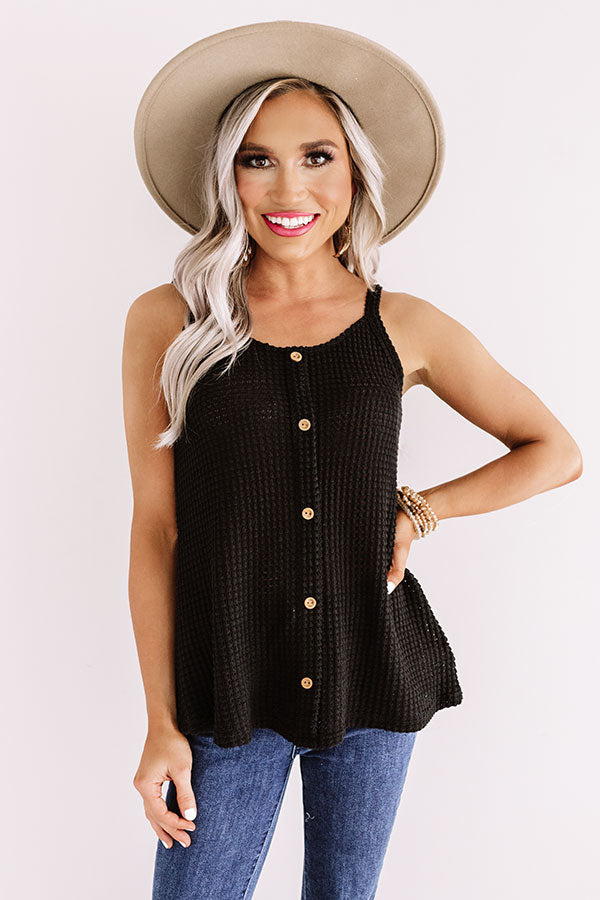 Patio Pretty Waffle Knit Tank In Black Image - 1