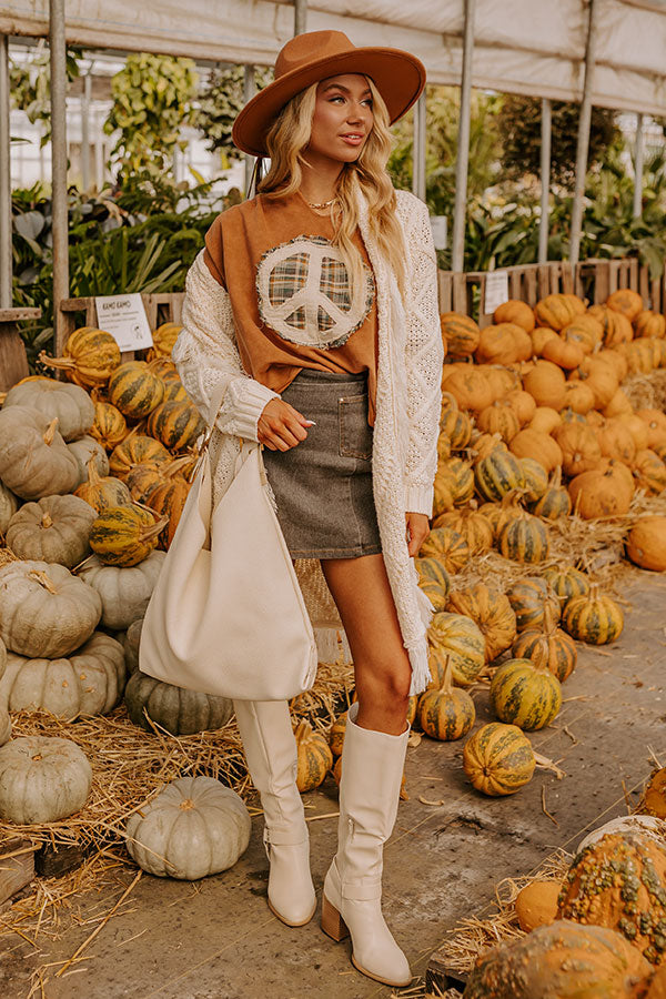 - Good vibes only with this adorable tee! Its cute peace sign patch adds a sweet touch to this trendy piece. Add a touch of laid-back style to your OOTD with this charming top!