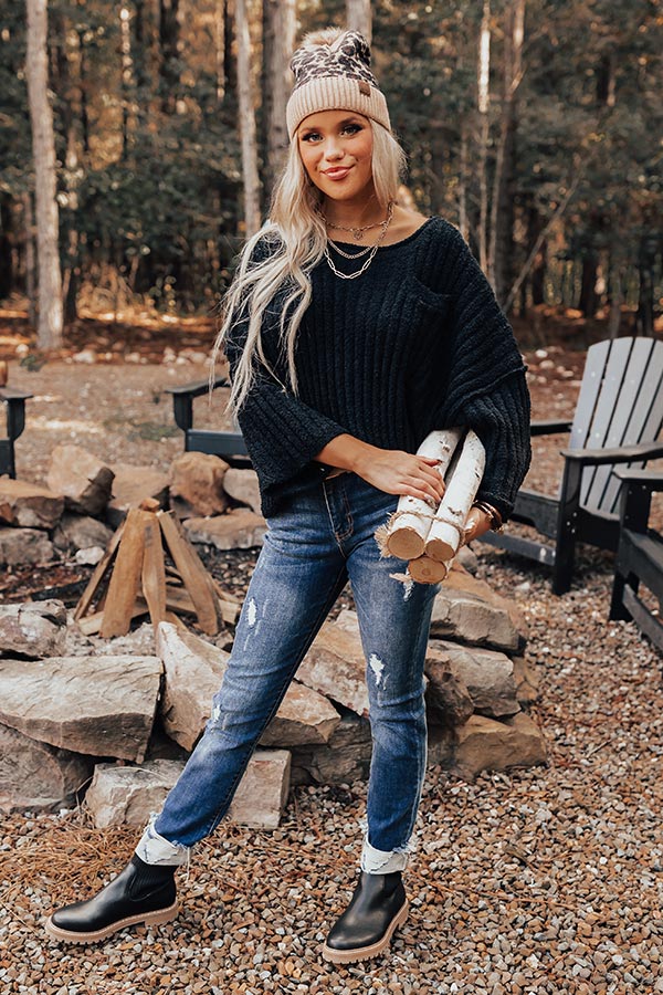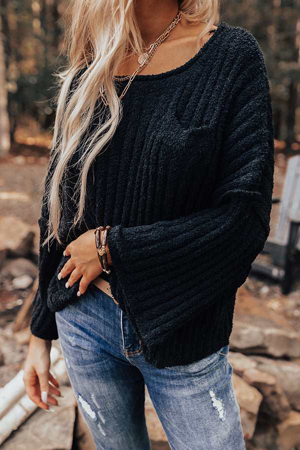 Our black 'Peacekeeper Shift Sweater' may be simple, but it's no less stylish with its soft knit material, thick ribbed texturing, rounded neckline, 3/4-length sleeves with flared cuffs, single accent chest pocket, and slouched silhouette that falls into a straight hemline! Measurements