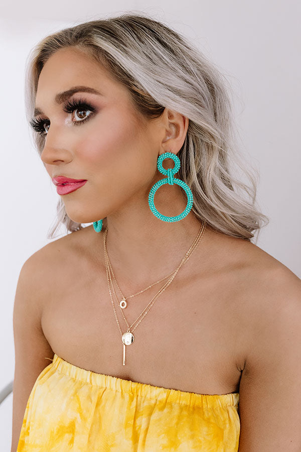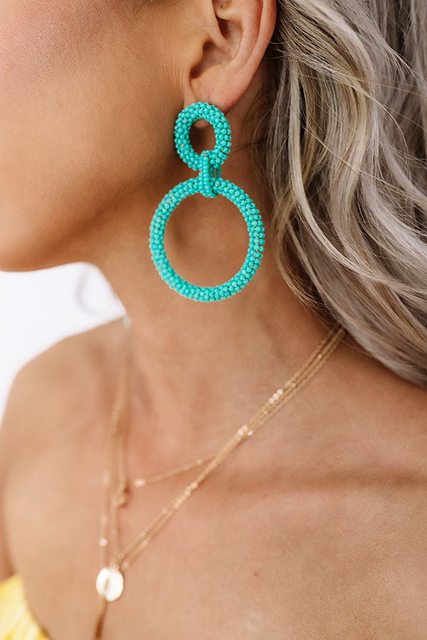 These adorable statement earrings are perfect for a beach party with their turquoise beaded hoop studs and larger dangling beaded hoops!