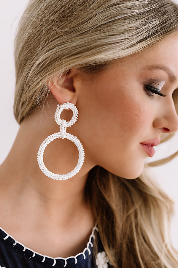 These adorable statement earrings are perfect for a beach party with their white beaded hoop studs and larger dangling beaded hoops!