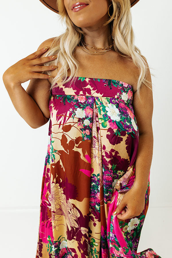 - A strapless cut with an interior non-slip strip and back tie detail