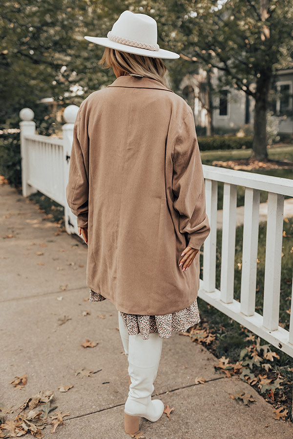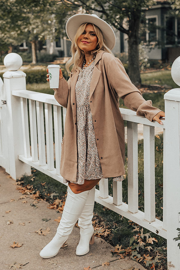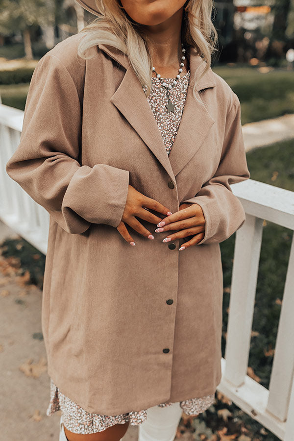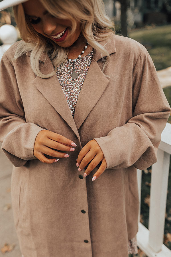 Keep warm and stylish all fall long in our chic taupe hued plus size 'Penn Station Meetup Coat' featuring lightweight material, long sleeves, a button down front with a collared neckline, low side pockets, and a draped silhouette that ends in a straight knee-length hemline!