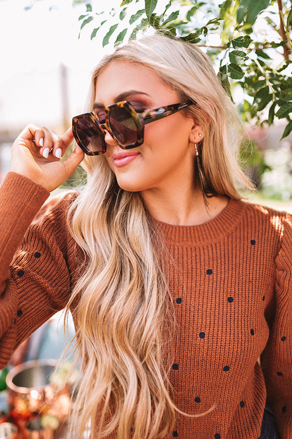 Look on in style with our stunning "Penthouse Views Sunnies" featuring oversized hexagon shaped frames patterned with a chic tortoiseshell print and dark tinted lenses!