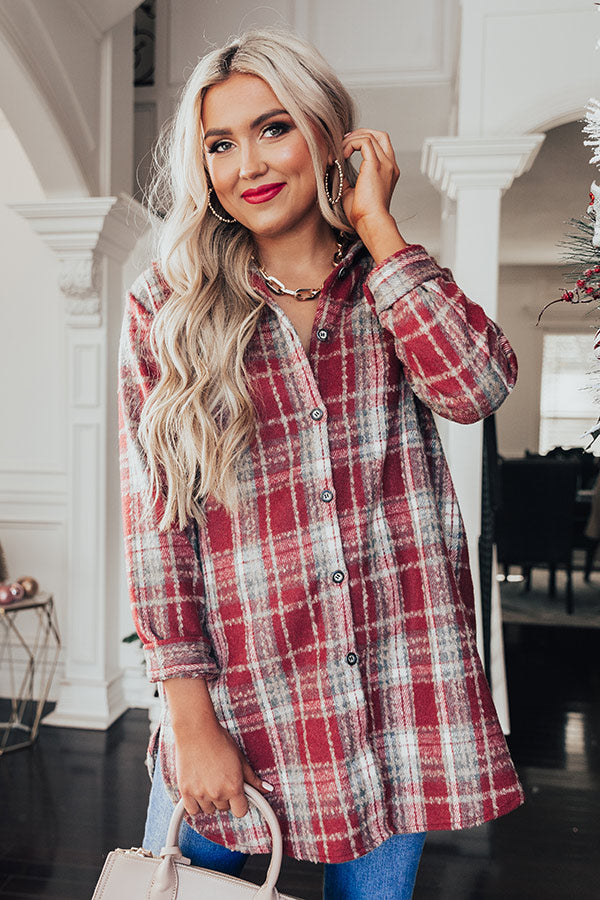 Peppermint Kisses Flannel Tunic Dress in Aurora Red