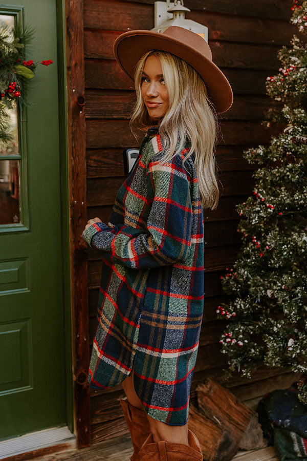 Peppermint Kisses Flannel Tunic Dress In Hunter Green