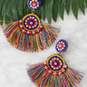You will look perfect in paradise in these statement earrings with their colorfully beaded stud and the oversized multi colored tassel fan!
