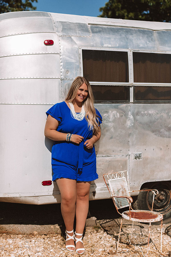 - A flattering romper silhouette that ends in ruffled mid-thigh length hemlines