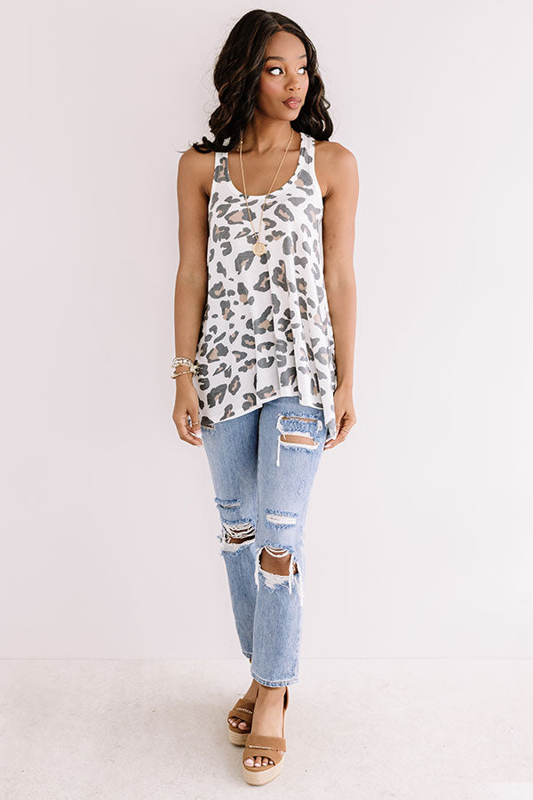 Add a "personal touch" to any OOTD by wearing this adorable white tank featuring lightweight material patterned with a bold leopard print, a scooped neckline, 1-inch sleeveless shoulder straps with a racerback fit, and a relaxed silhouette that falls into an uneven hemline! This piece styles perfectly with some distressed ankle skinnies and brown block heels, but you can also wear it with some frayed black shorts, "The Lyla Sandal in Natural," sunnies, and our "A Moment's Notice Crossbody in Warm Taupe!" Measurements