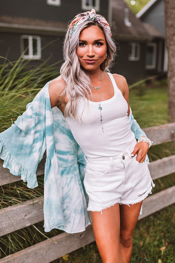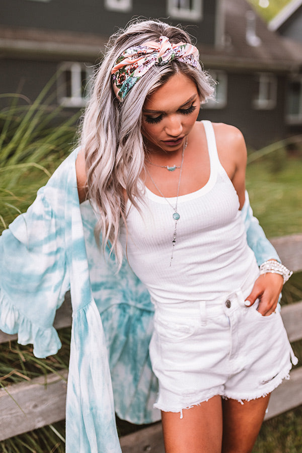 Hurry and add our flirty white "Pick Up The Pace Tank" to your cart with its lightweight material, subtle ribbed texturing, scooped neckline and upper back, 1-inch sleeveless shoulder straps, and form fitting silhouette that falls into a straight hemline! We have layered this cutie under a tie dye overlay with some distressed white shorts, a matching headband, and some neutral wedges, but you can also wear it with our "Casa Casual Joggers in Grey," the "Fact Snake Print Slip On Sneaker," and "The Essential Faux Leather Backpack in Grey!"
