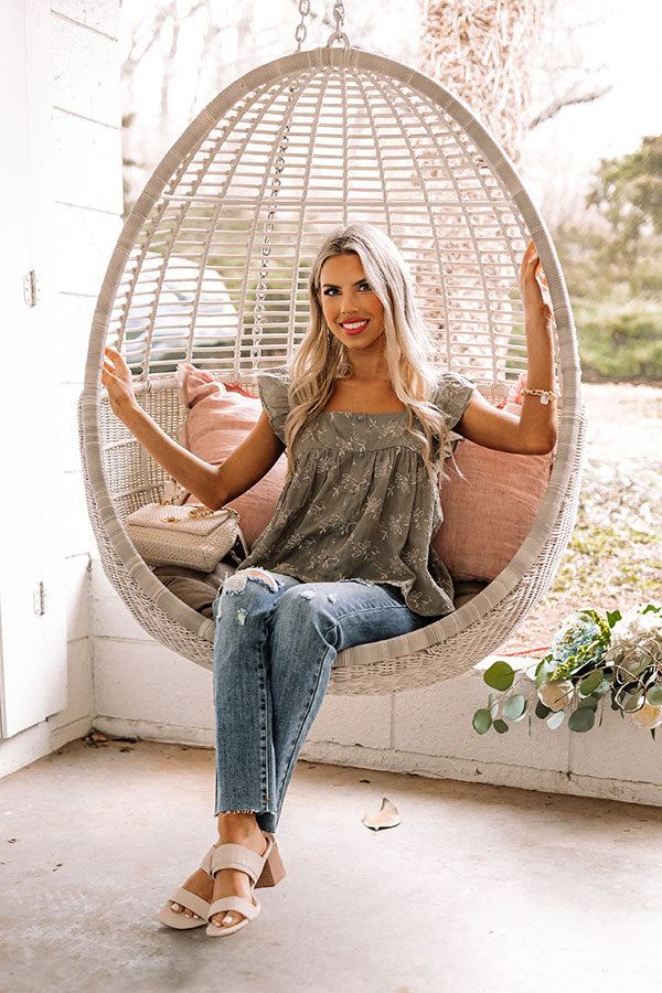 You are sure to turn heads in our charming sage colored 'Picnic Please Top' featuring lightweight material patterned with a dainty floral print, a square neckline and upper back, ruffled cap sleeves, and a relaxed silhouette that falls into a straight hemline!