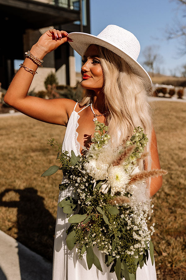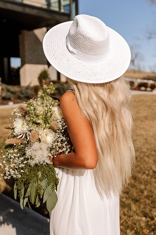 Perfect for outdoor occasions, our charming white 'Picnic Please' hat features lightweight woven material, a 4-inch brim, and an accent ribbon!