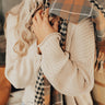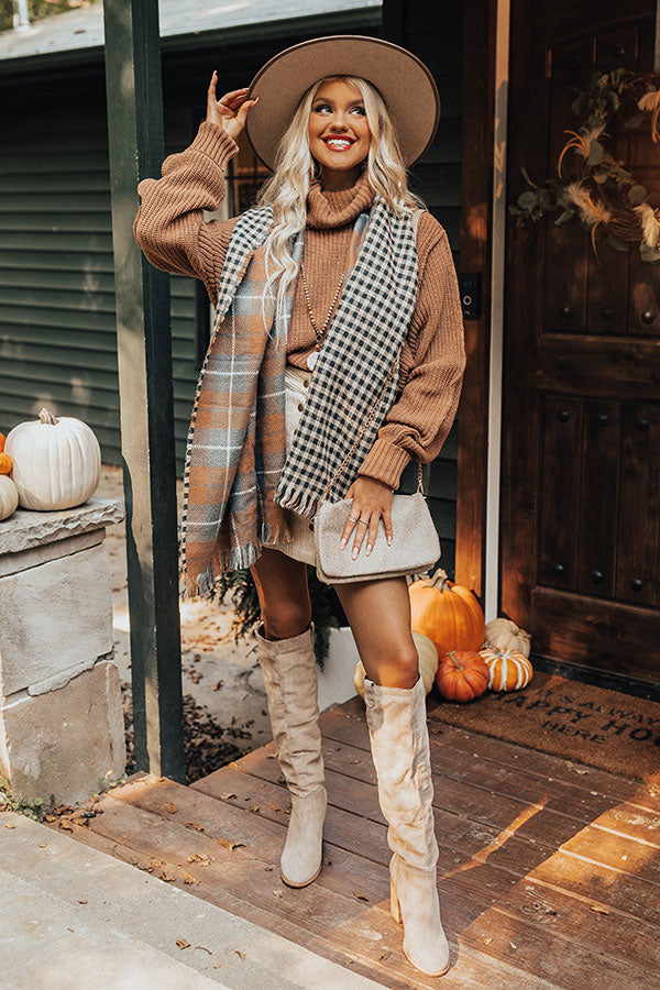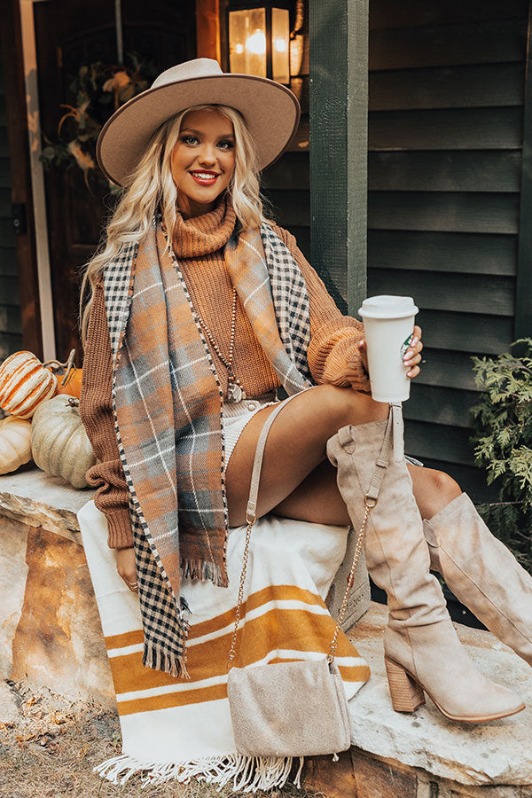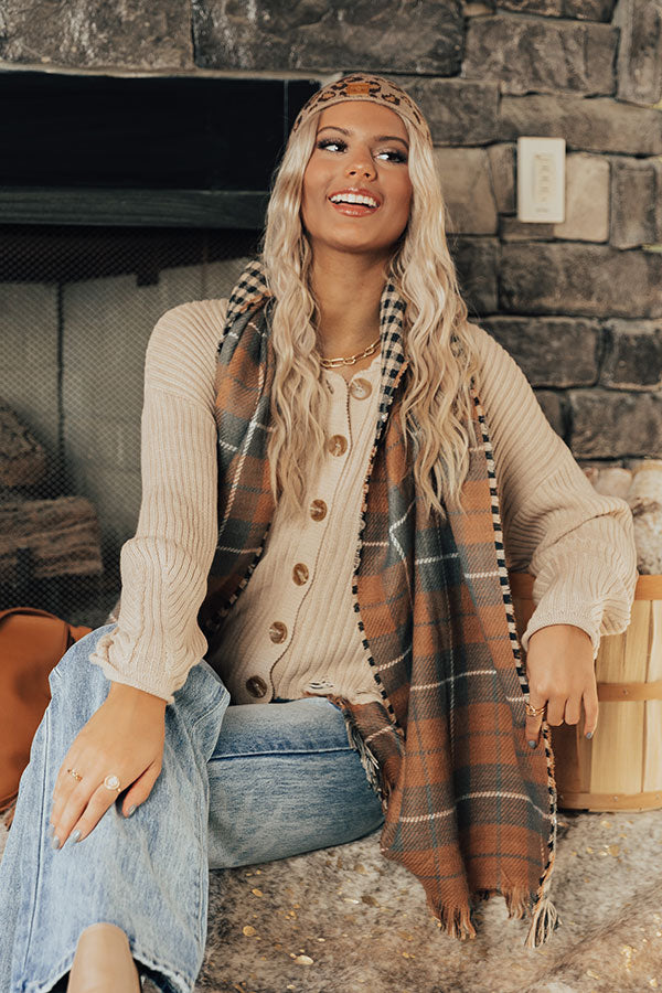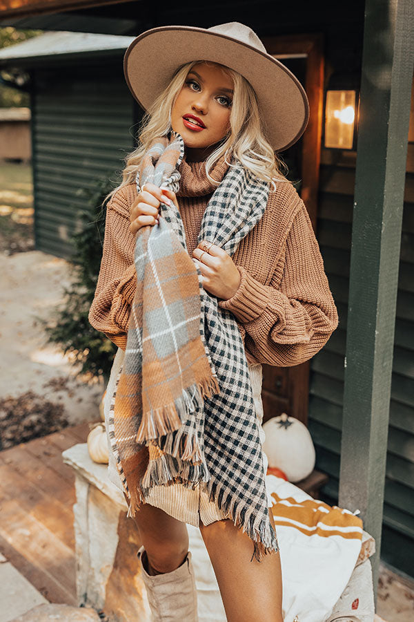 Keep warm and stylish all fall long with our pretty 'Piece Of Pie' scarf featuring soft lightweight material with a black and white checkered print on one side and a natural and light grey hued plaid print on the other and frayed trim detailing!