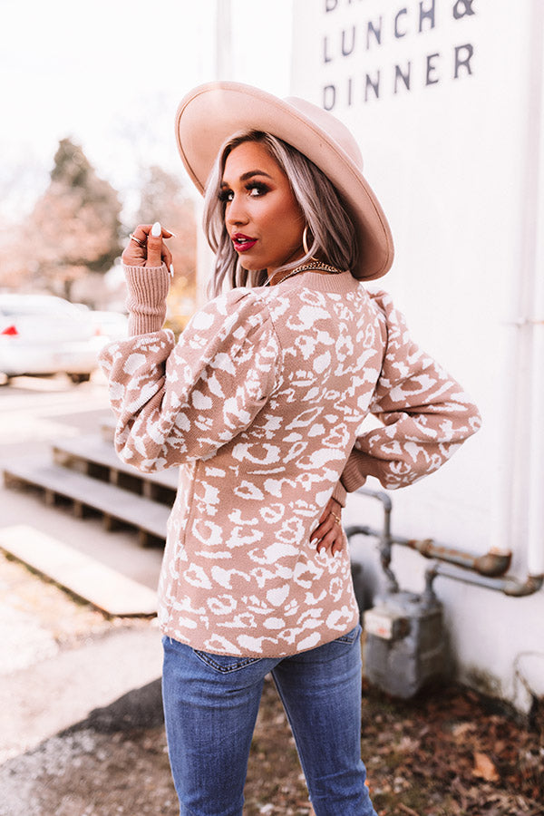 Pikes Peak Knit Leopard Sweater In Iced Latte
