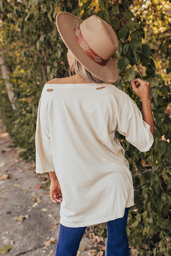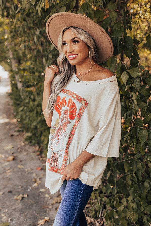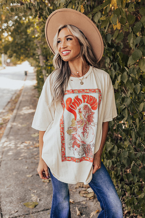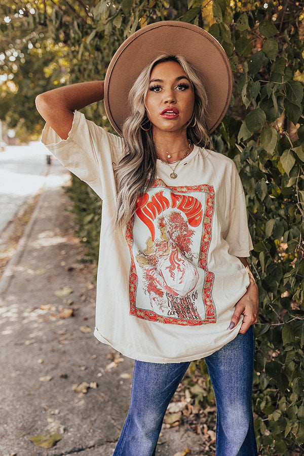 Our champagne colored 'Pink Floyd Marquee London' tee features soft lightweight vintage-wash material with distressed detailing, a cute graphic on the front, a rounded neckline, loose short sleeves, and a slouched silhouette that ends in a straight hemline!
