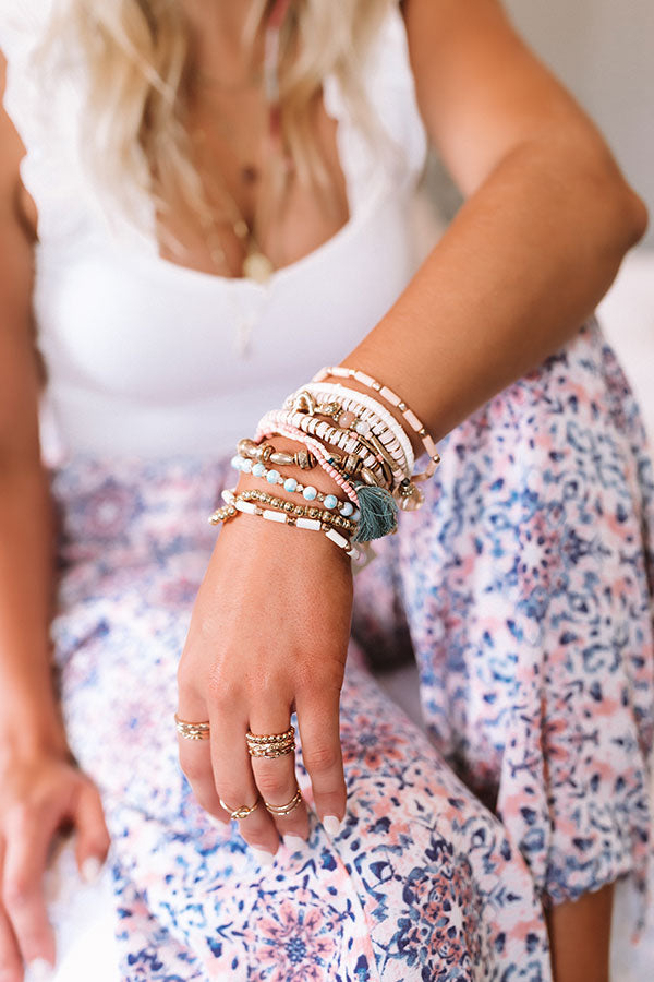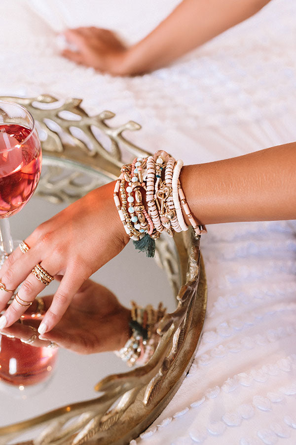 You are guaranteed to slay all day when you accessorize with our stunning "Pink Sand Beaches Bracelet Set" featuring 12 pieces adorned with a variety of multi colored beads, charms, and tassels!