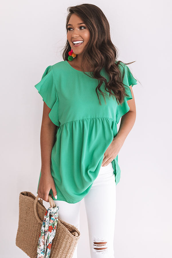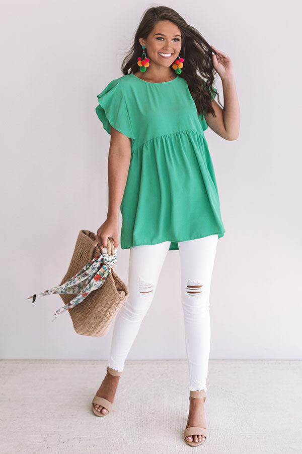 There is beauty in simplicity and this emerald babydoll is the perfect piece to wear this summer with its ruffled sleeves and keyhole cutout with a button closure in the back! So grab some pinot and let this flowy top take you to paradise! Measurements